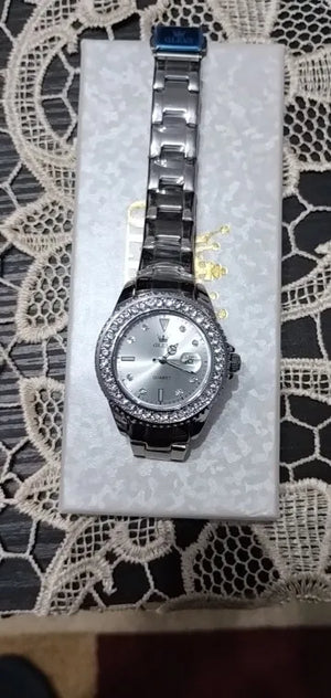 Step up your style effortlessly with this elegant women's wristwatch. Its diamond dial sparkles with sophistication while the stainless steel build ensures lasting durability. Stay on time with precision quartz movement, and enjoy every moment confidently.